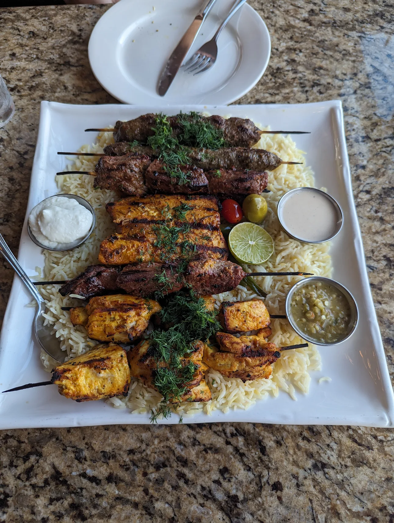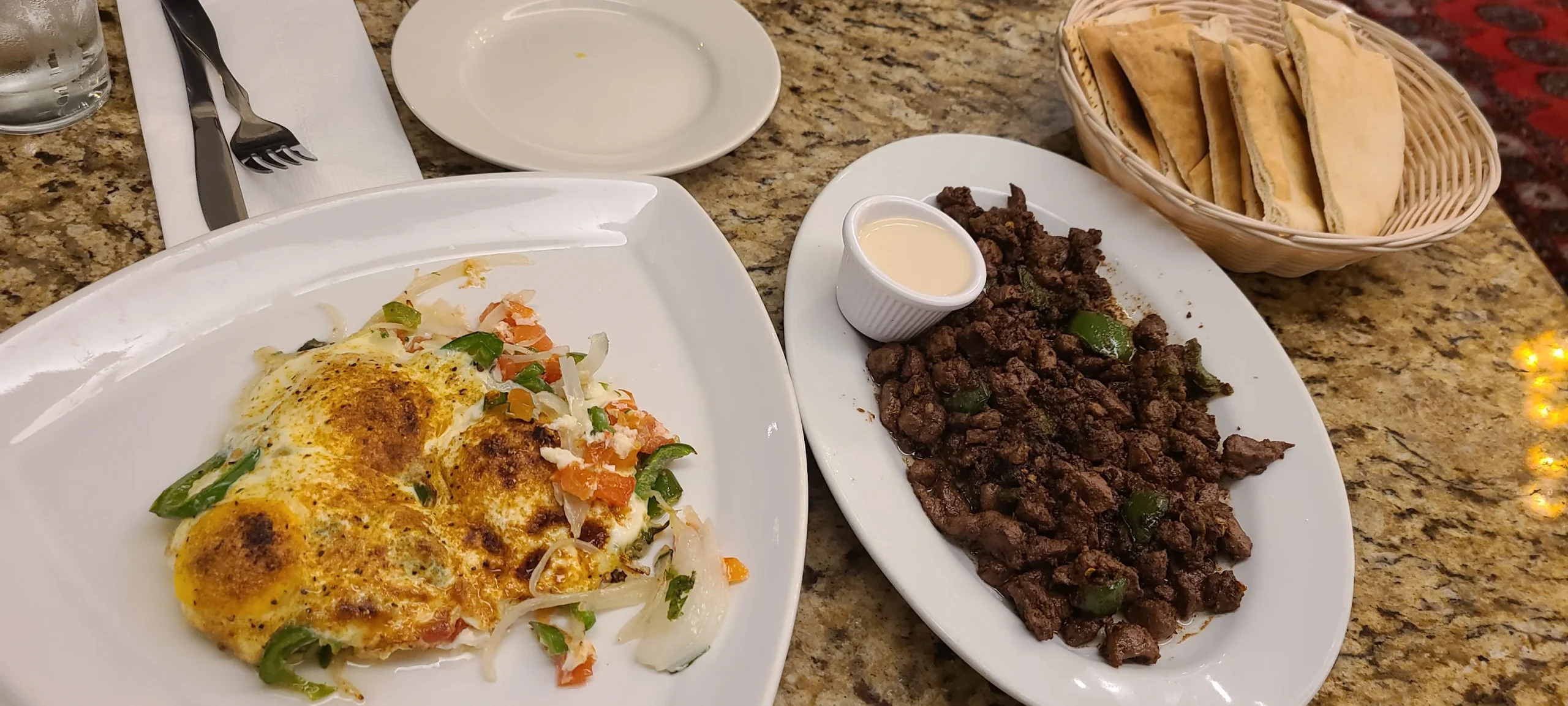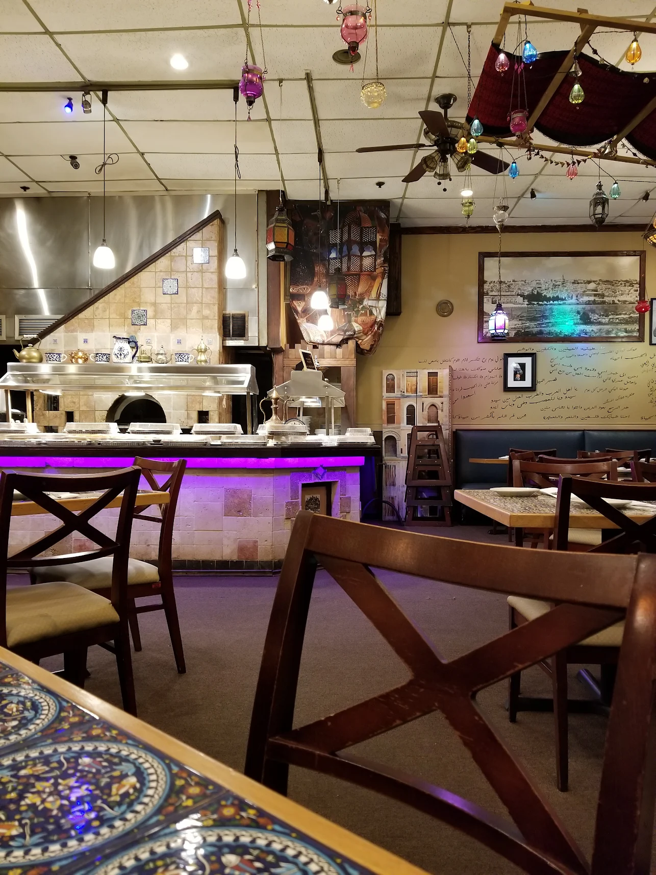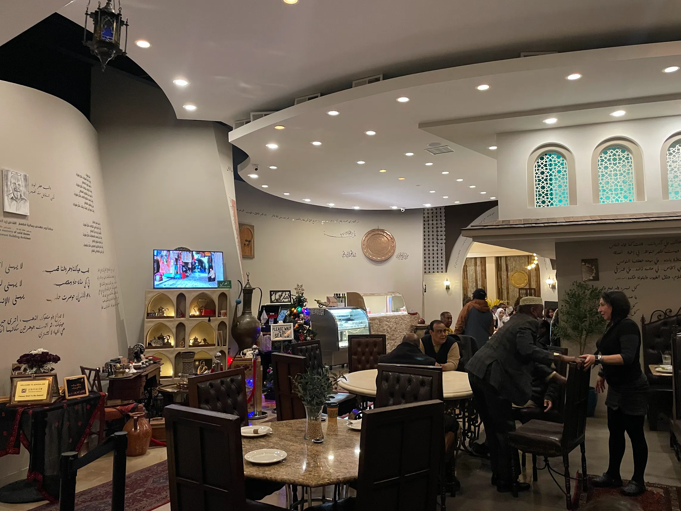 What a beautiful atmosphere to dine in, lovely decor and very pleasant staff. The night we went there was a nice musician wandering around the restaurant singing. I would highly recommend the Jerusalem Restaurant.
